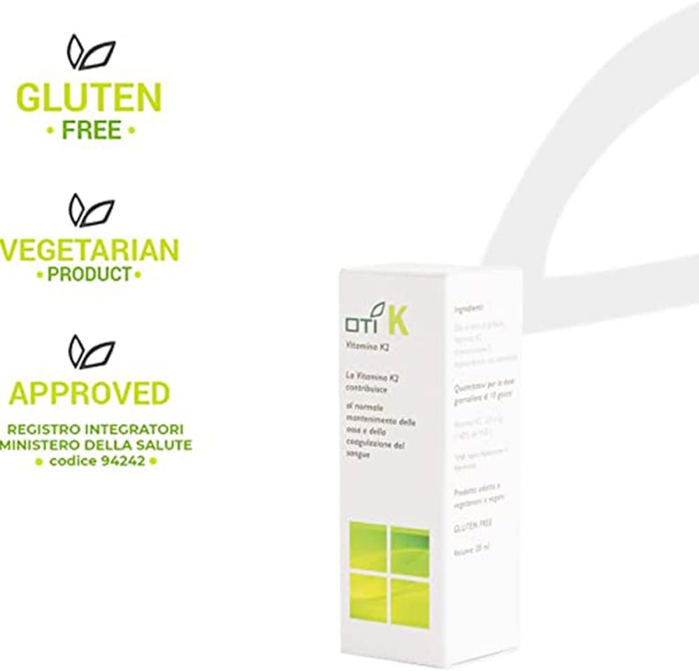 Vitamina K – Integratore Alimentare Naturale OTI a Base di Vitamina K2 – con Olio di Semi di Girasole – Formato in Gocce 20 ml. – Made in Italy