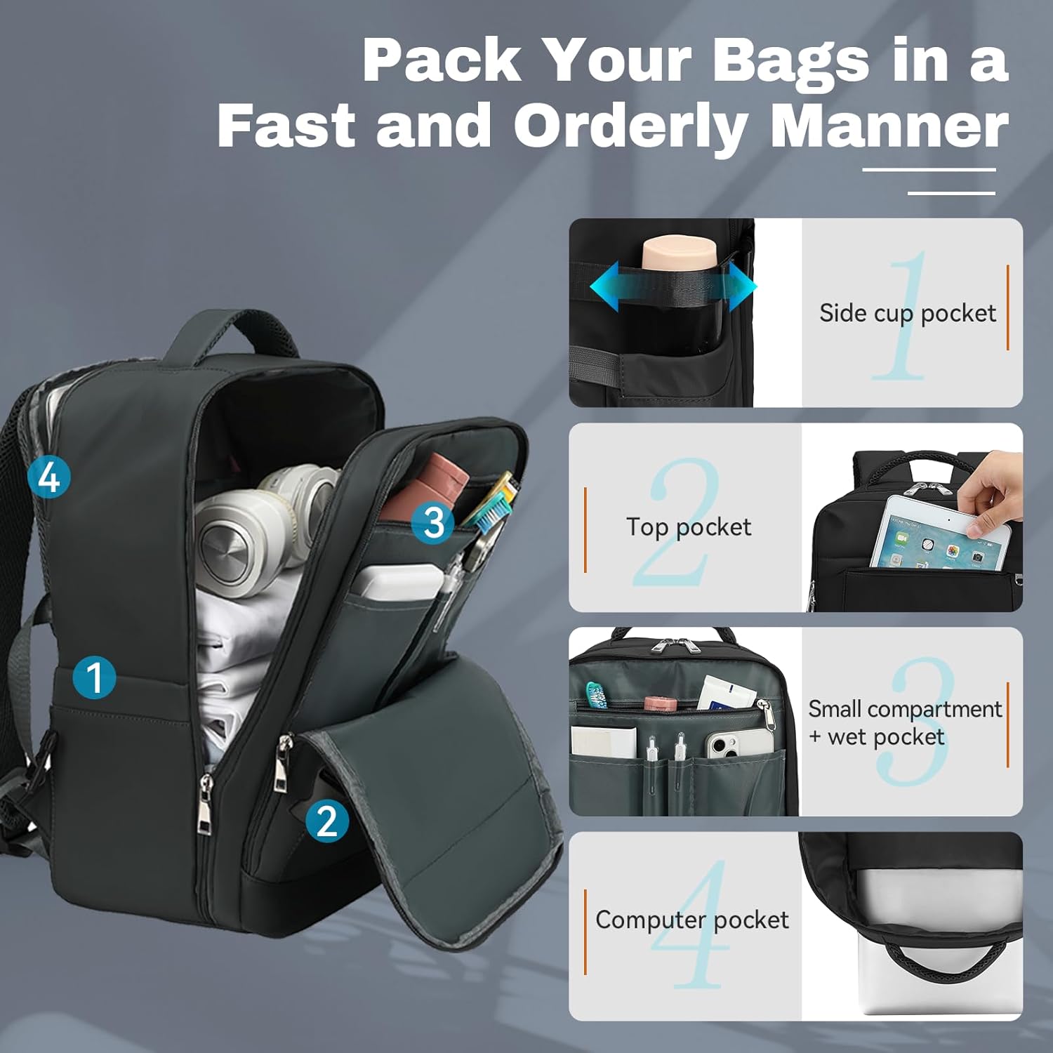 Xkdoai Zaino per Ryanair 40x20x25 Zaino da Viaggio Aereo Bagaglio a Mano Borsa da Viaggio Zaini per Ryanair 40x20x25 Tasca Antifurto Scomparto Separato per Laptop da 14 Pollici